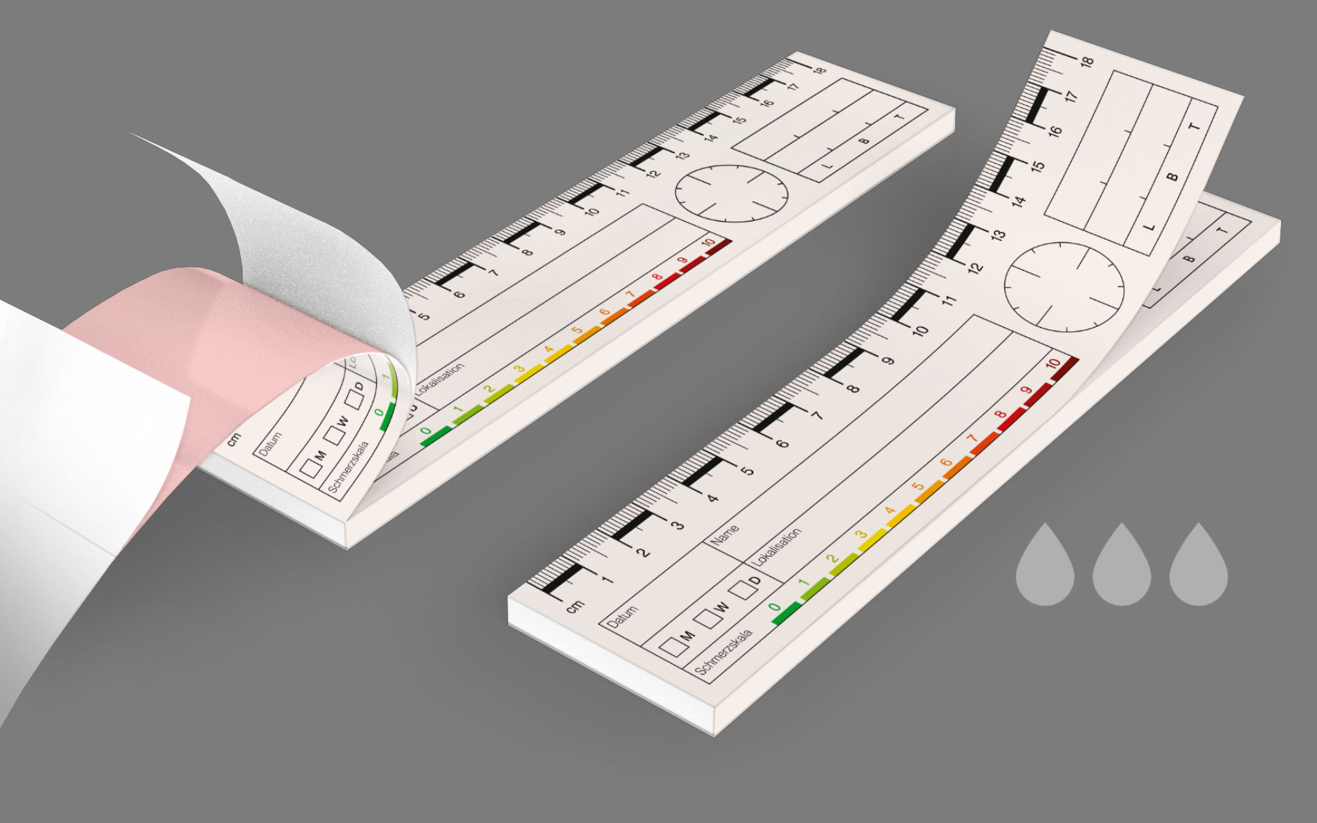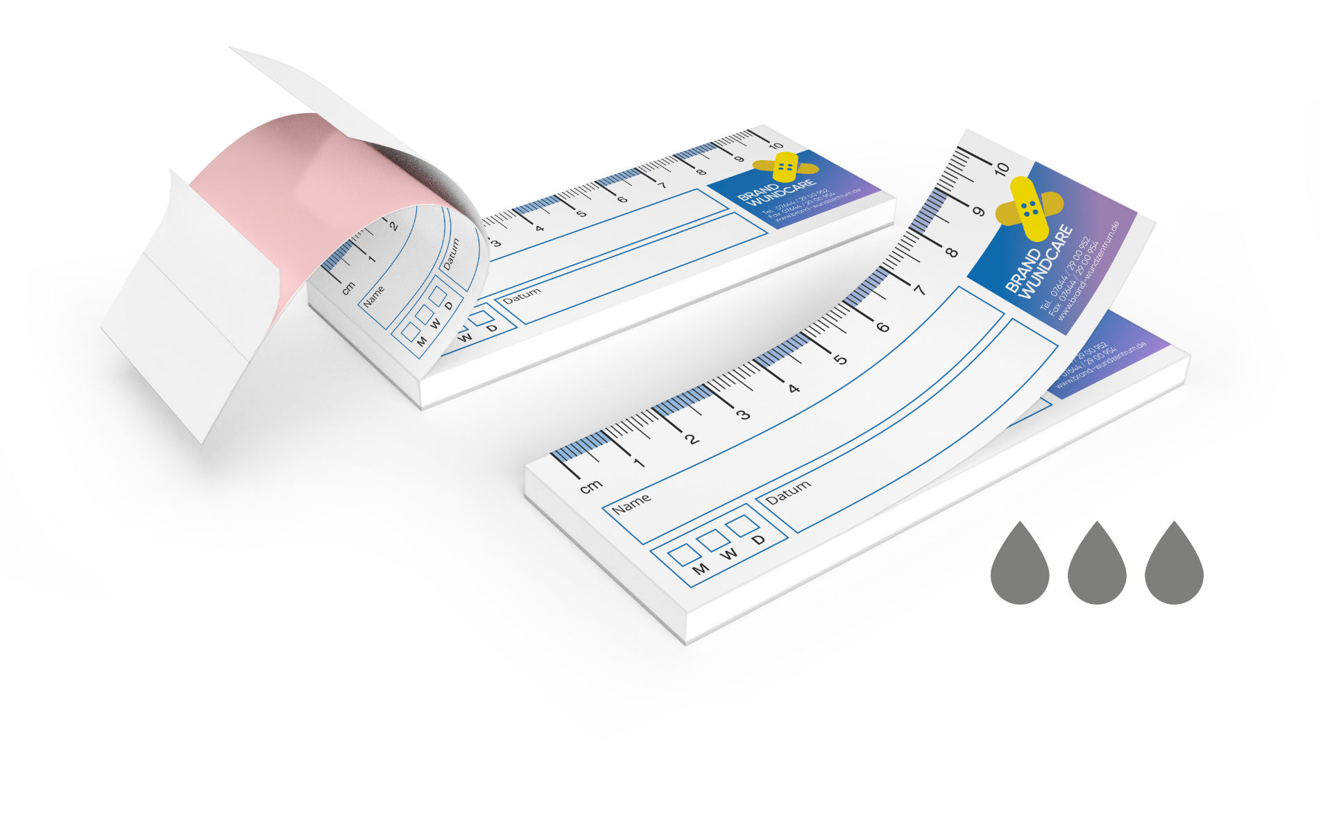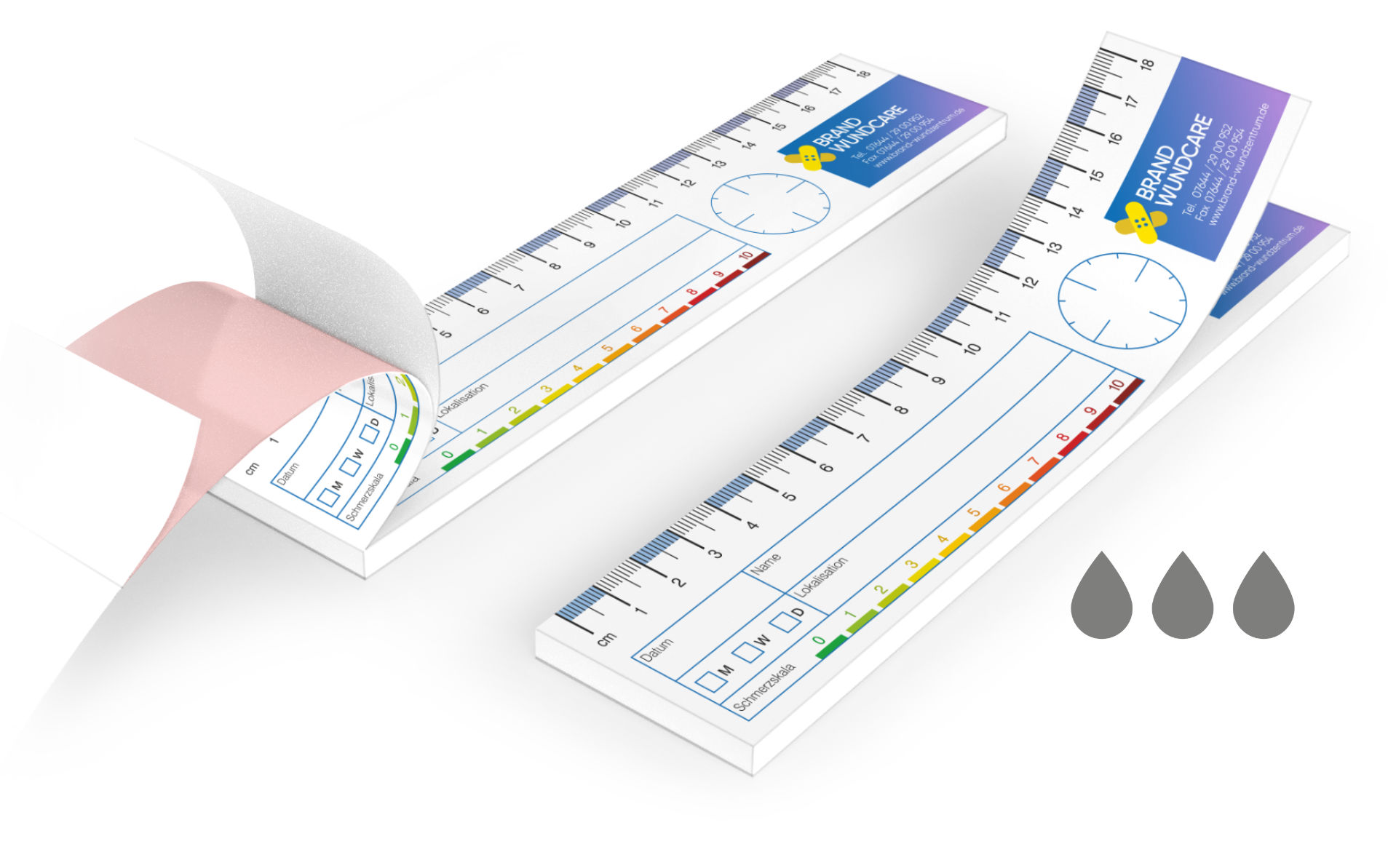 Preiswerte, neutrale Wundlineal-Blöcke zur Wunddokumentation für Ärzte, Altenpfleger, Wundexperten und Wundmanager.